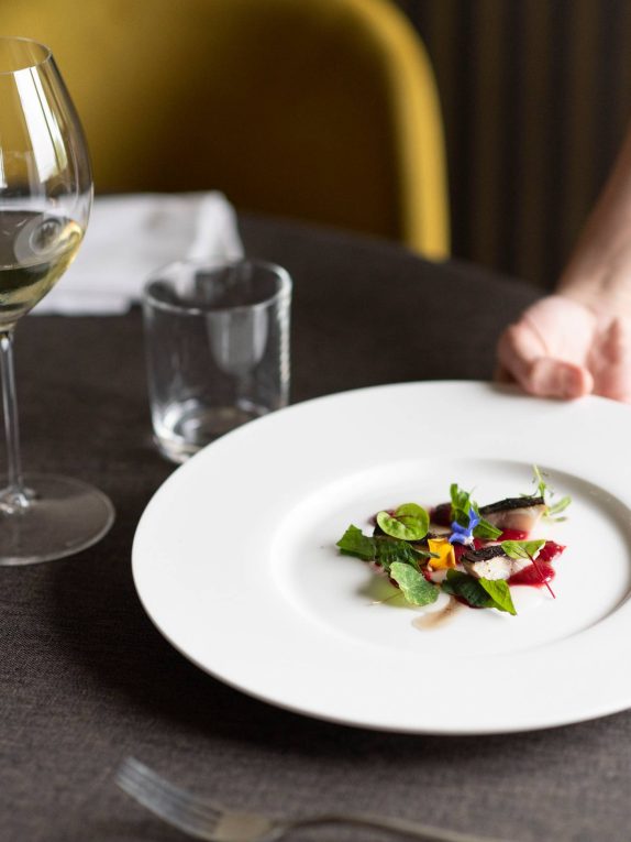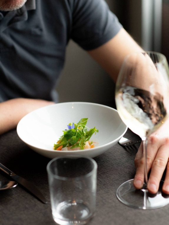Io invece ho scelto la sala. È lì che si crea l’atmosfera del ristorante: dove i piatti di Andrea incontrano le persone sedute a tavola e la cucina diventa esperienza vissuta.